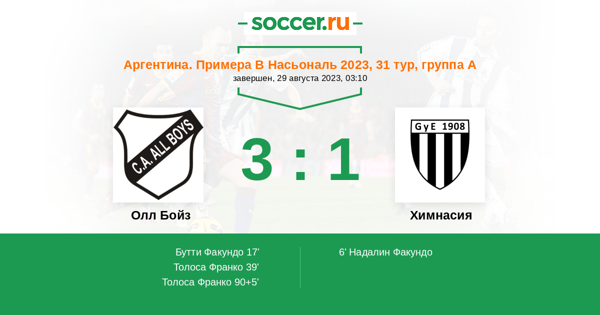 Протокол матча Олл Бойз против Химнасия