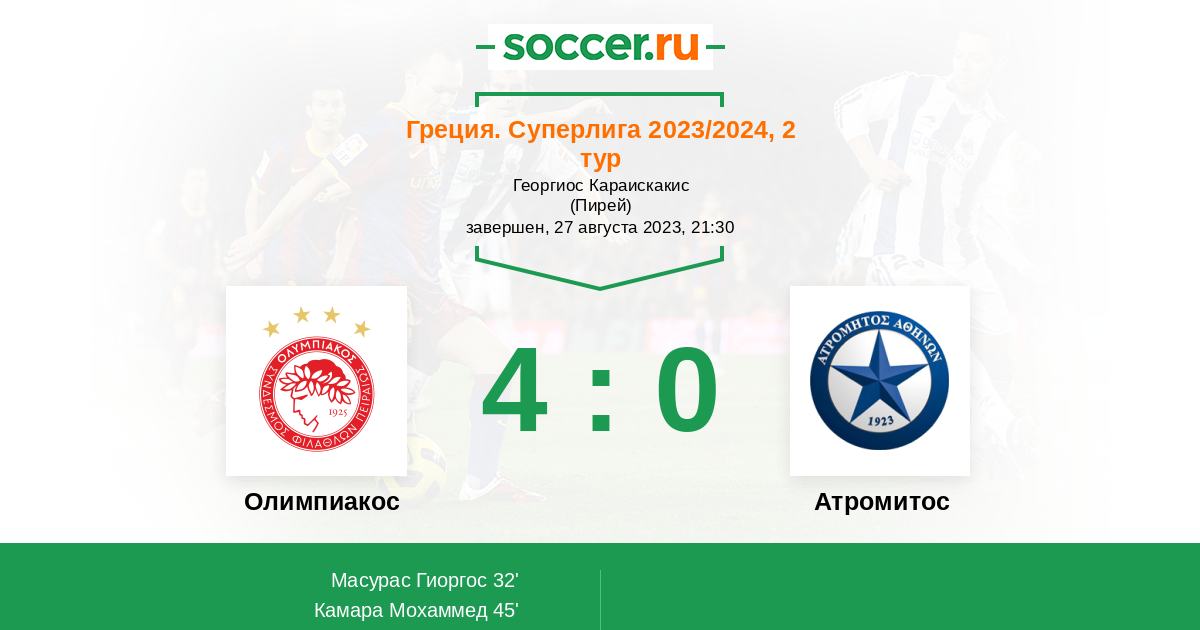 Протокол матча Олимпиакос против Атромитос