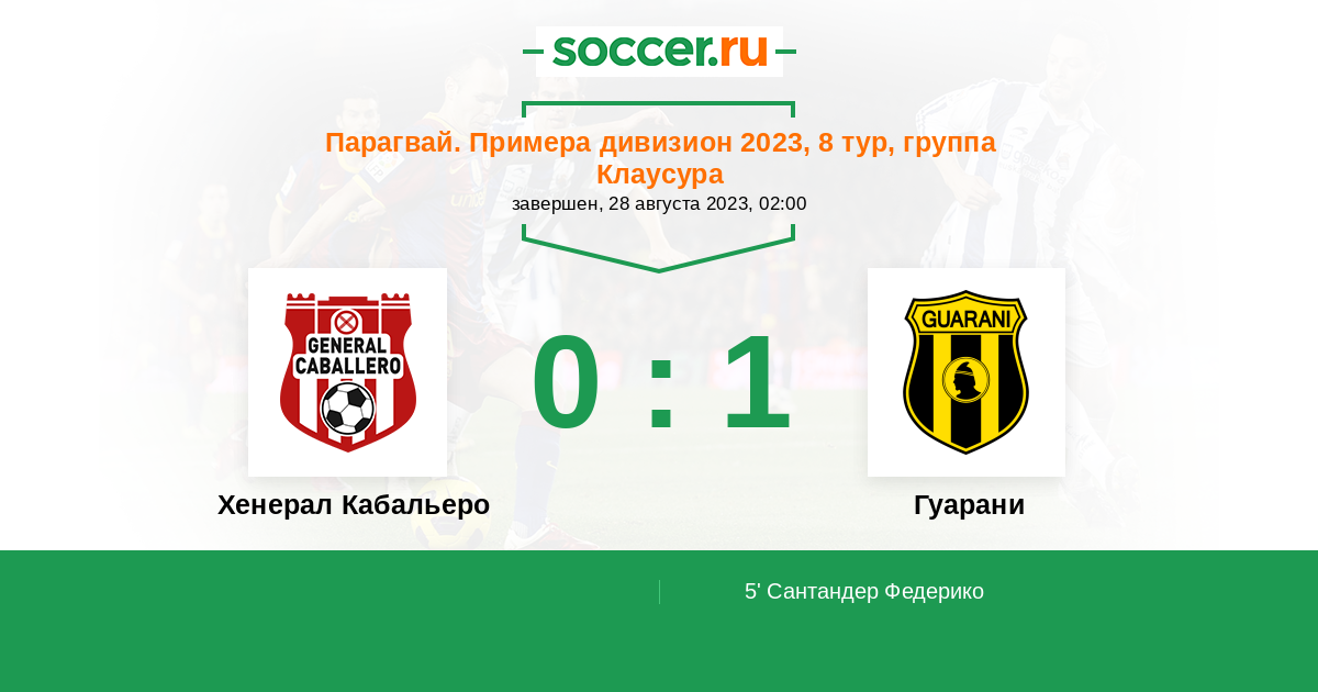 Протокол матча Хенерал Кабальеро против Гуарани