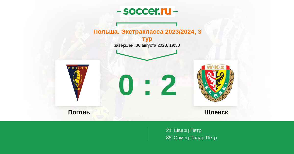 Протокол матча Погонь против Шленск