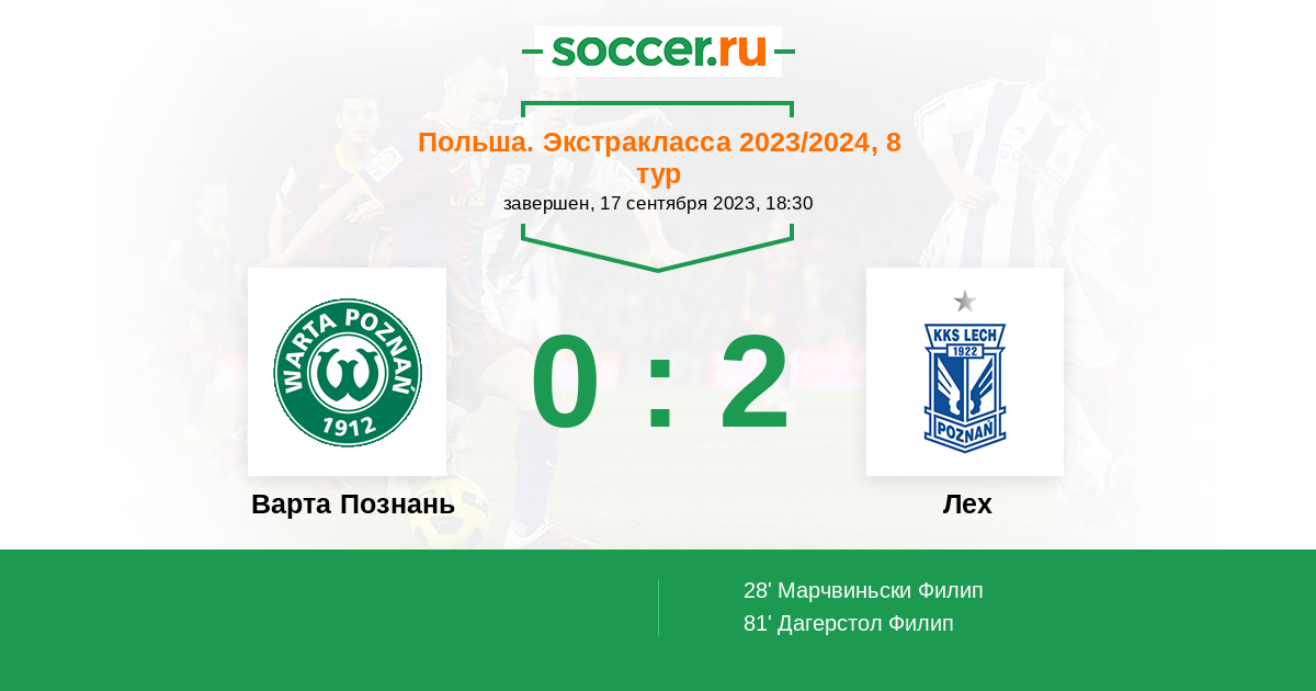 Протокол матча Варта Познань против Лех