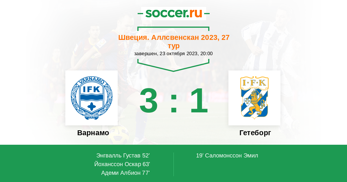 77' (3:1) Адеми Албион (8) (Энгвалль Густав (14))