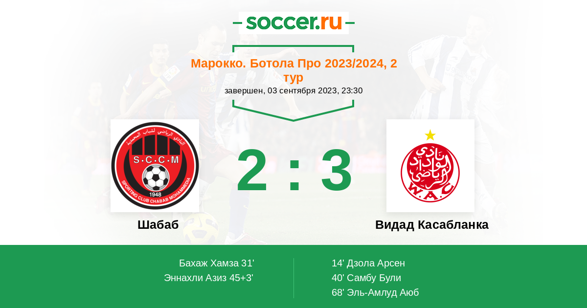 Протокол матча Шабаб против Видад Касабланка