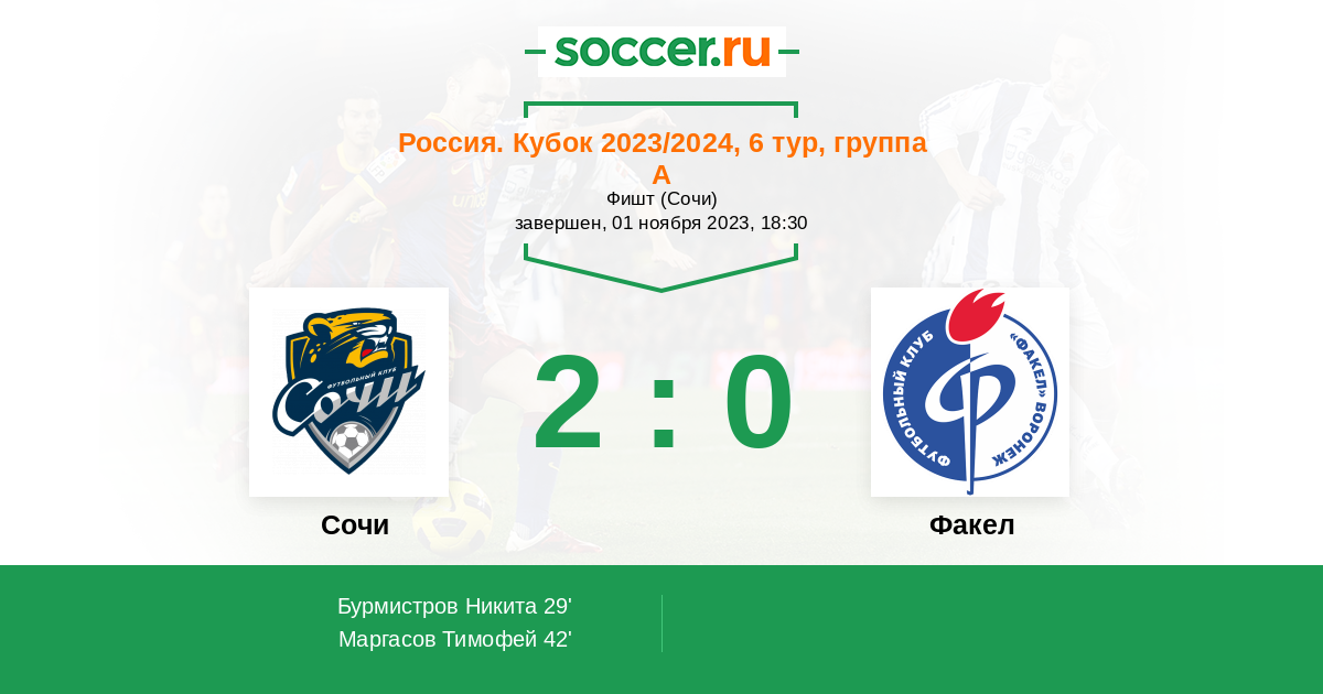 Мелкадзе не вижу в стартовом составе. Сочи могут удивить. За третье место есть шанс зацепиться. Но Факел то тоже не пальцем деланный.