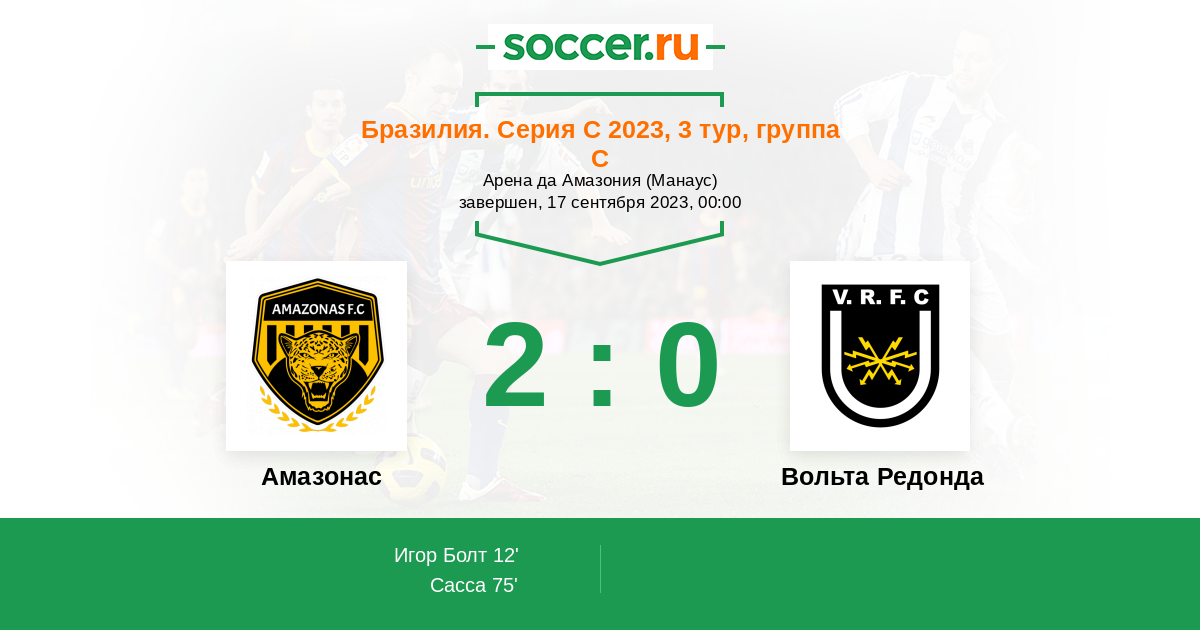 Протокол матча Амазонас против Вольта Редонда