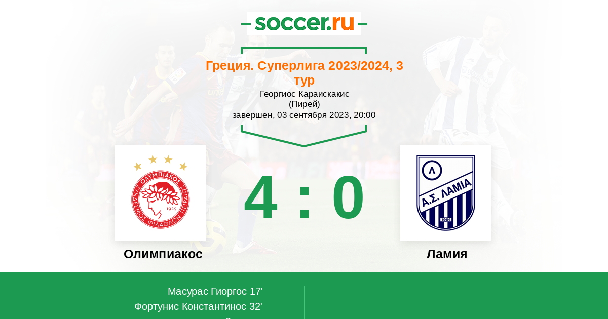 Протокол матча Олимпиакос против Ламия