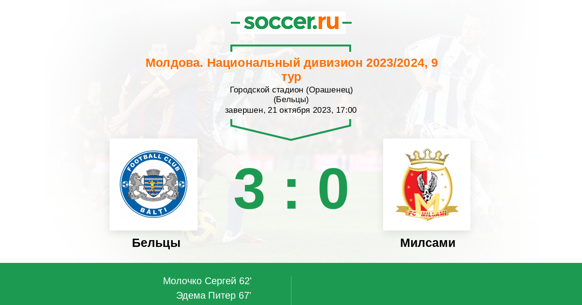 Протокол матча Бельцы против Милсами