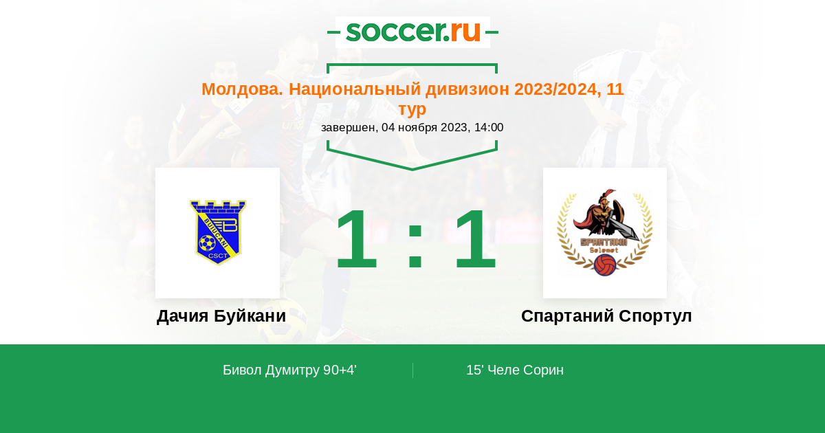Протокол матча Дачия Буйкани против Спартаний Спортул