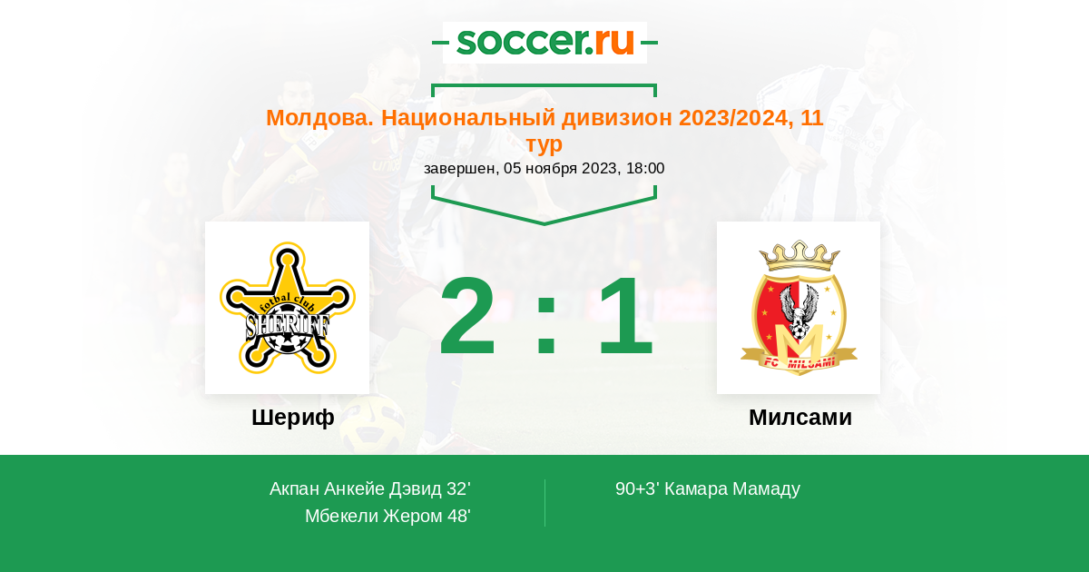 Протокол матча Шериф против Милсами