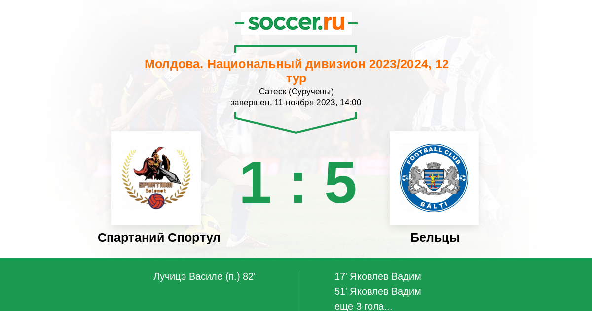 Протокол матча Спартаний Спортул против Бельцы