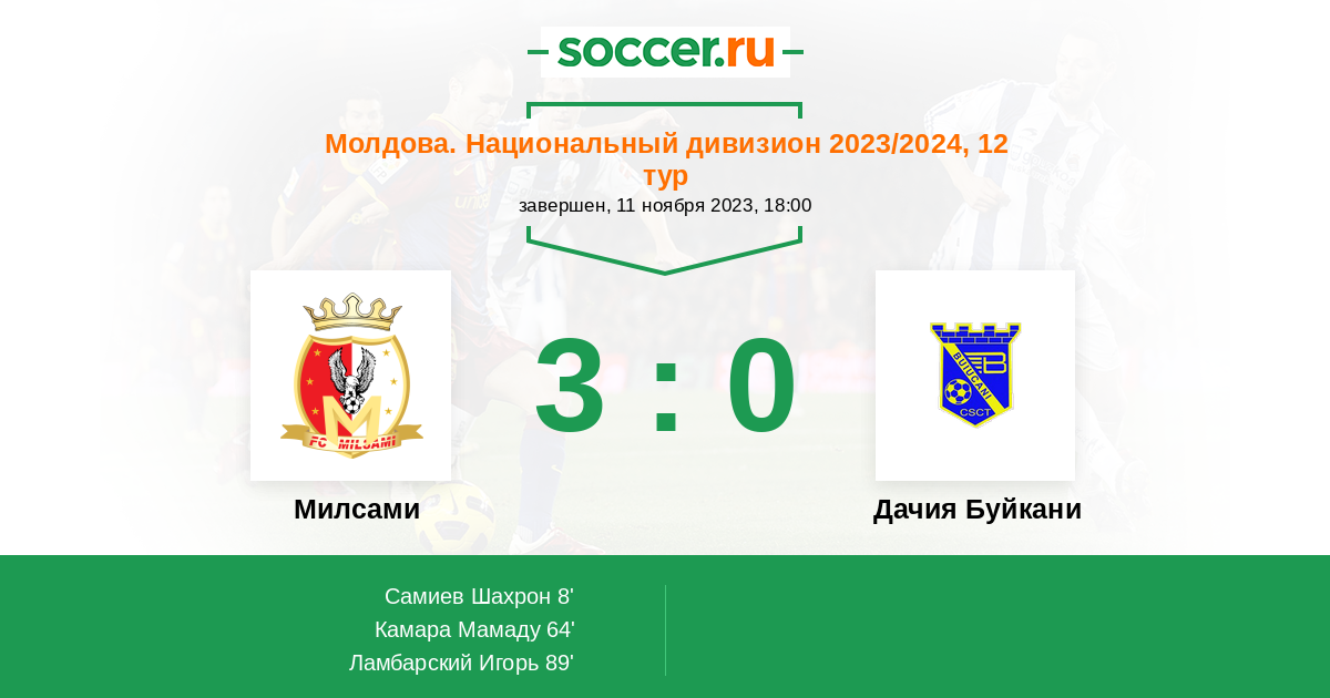 Протокол матча Милсами против Дачия Буйкани
