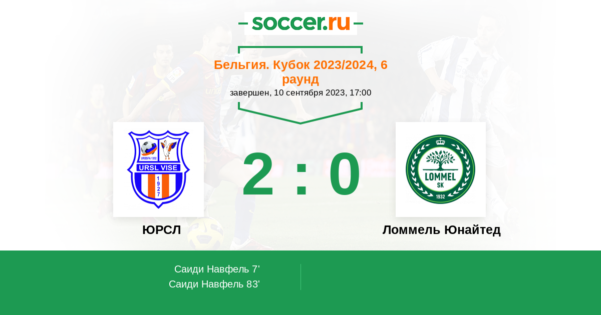 Протокол матча ЮРСЛ против Ломмель Юнайтед