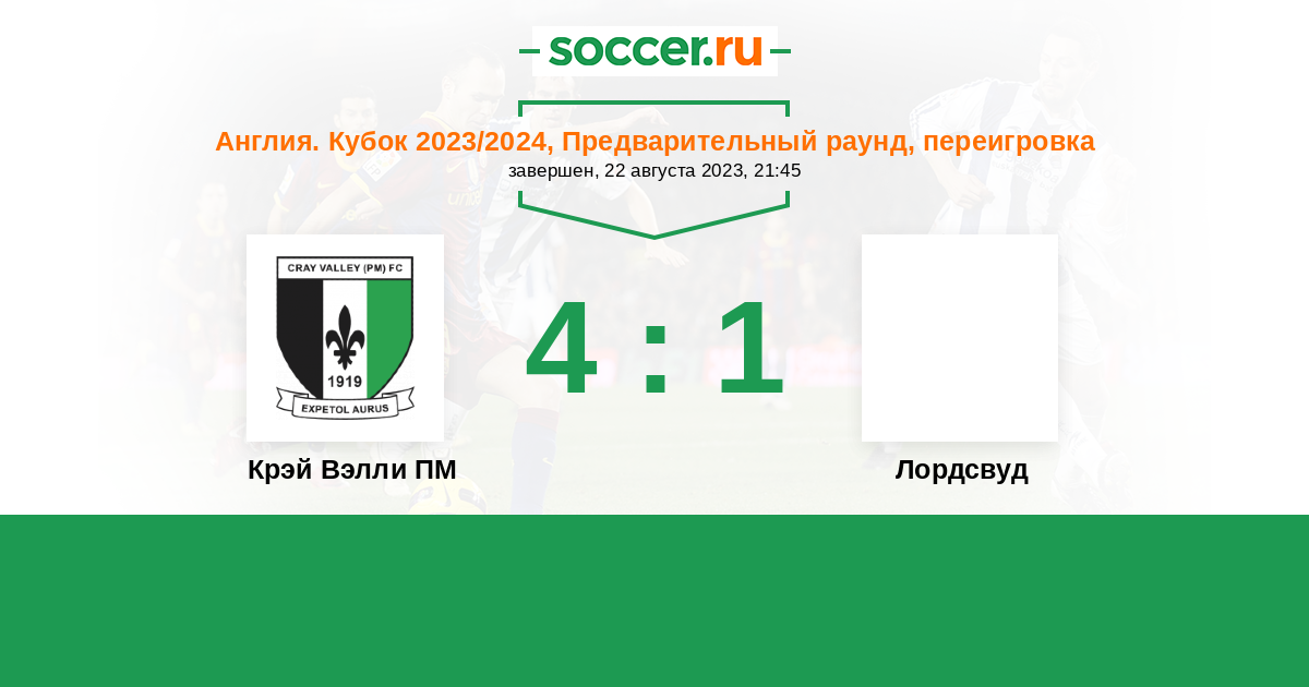 История матча Крэй Вэлли ПМ против Лордсвуд