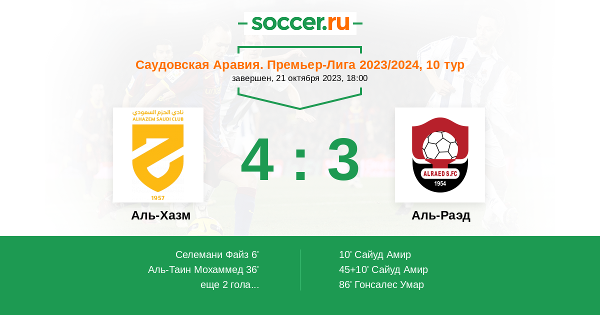 Протокол матча Аль-Хазм против Аль-Раэд