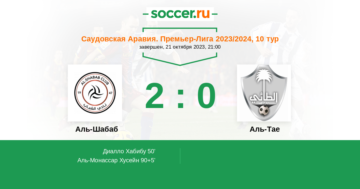 Протокол матча Аль-Шабаб против Аль-Тае