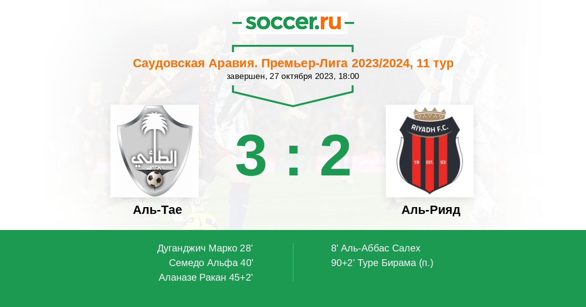 Протокол матча Аль-Тае против Аль-Рияд