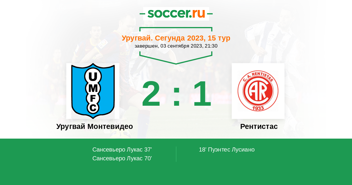Протокол матча Уругвай Монтевидео против Рентистас