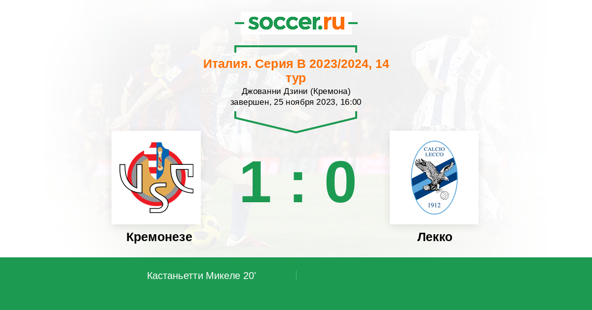 Протокол матча Кремонезе против Лекко