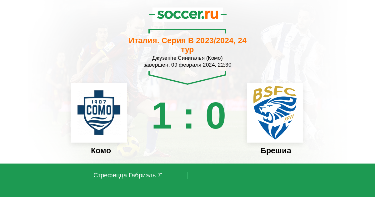 Протокол матча Комо против Брешиа