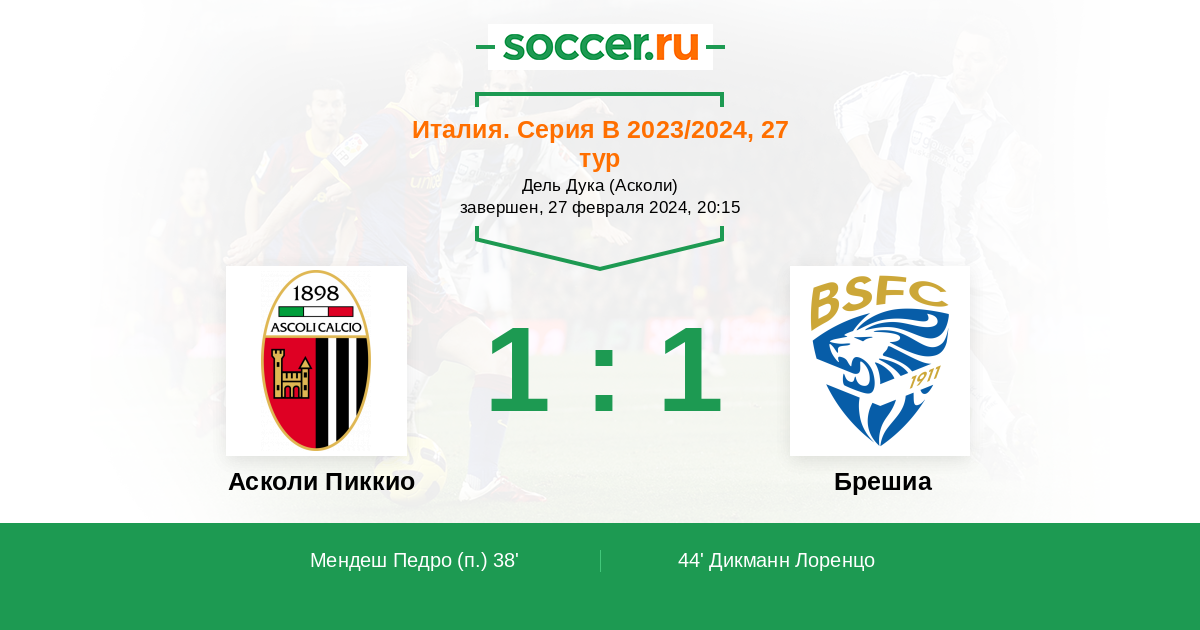 Протокол матча Асколи Пиккио против Брешиа