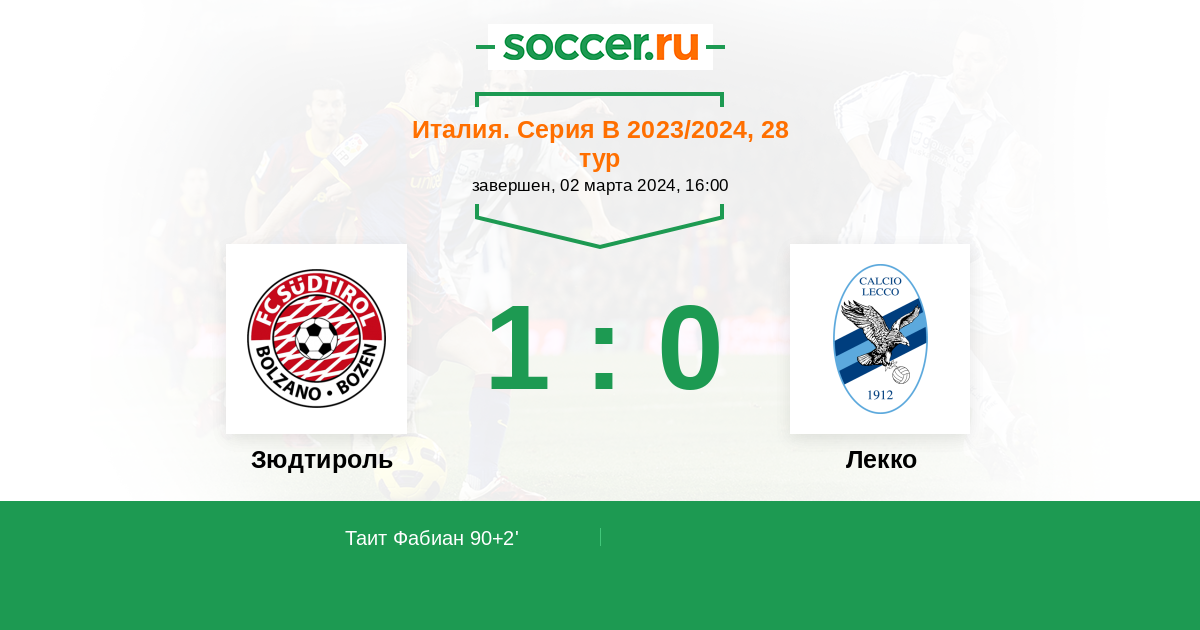Протокол матча Зюдтироль против Лекко