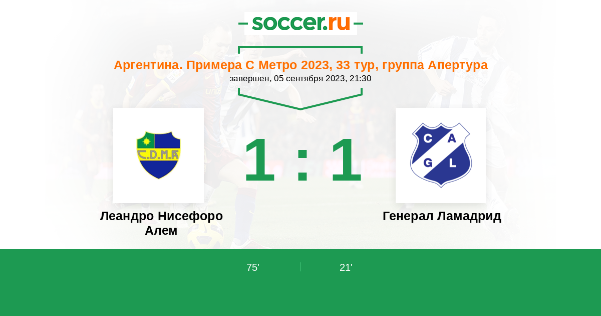 Протокол матча Леандро Нисефоро Алем против Генерал Ламадрид