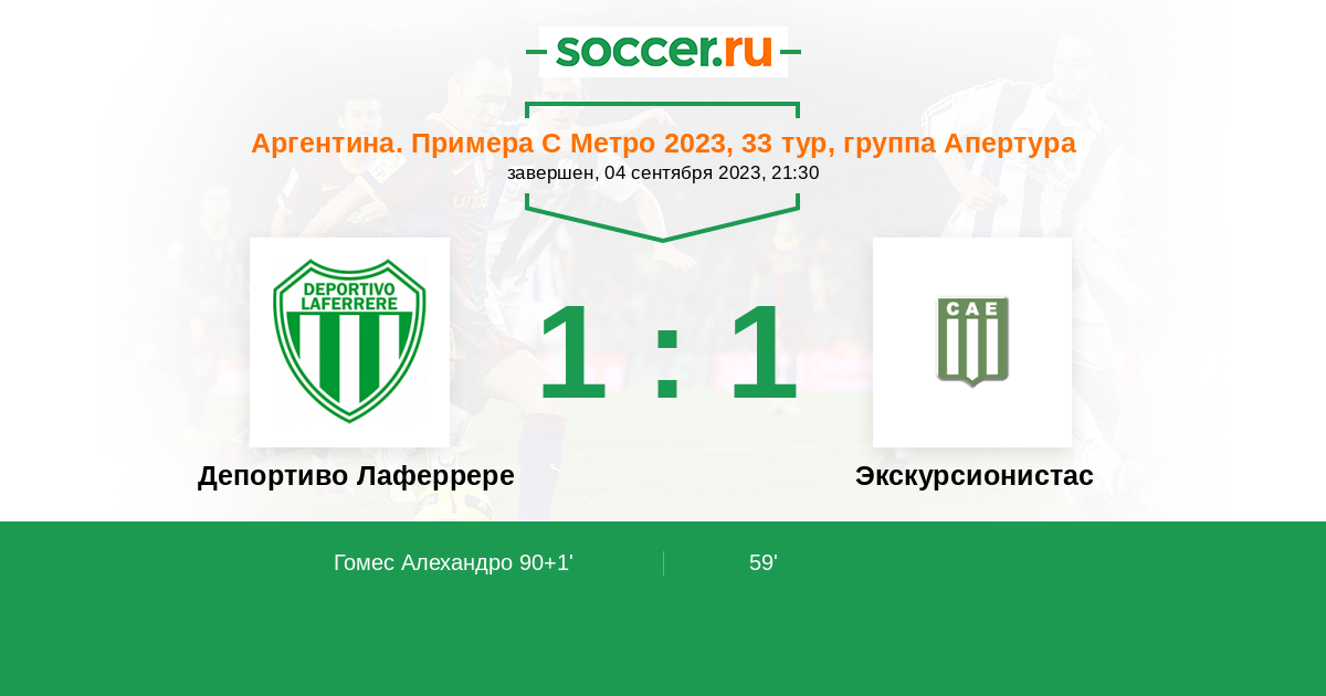 Протокол матча Депортиво Лаферрере против Экскурсионистас