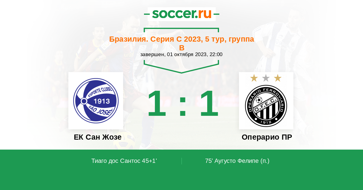 Протокол матча ЕК Сан Жозе против Операрио ПР
