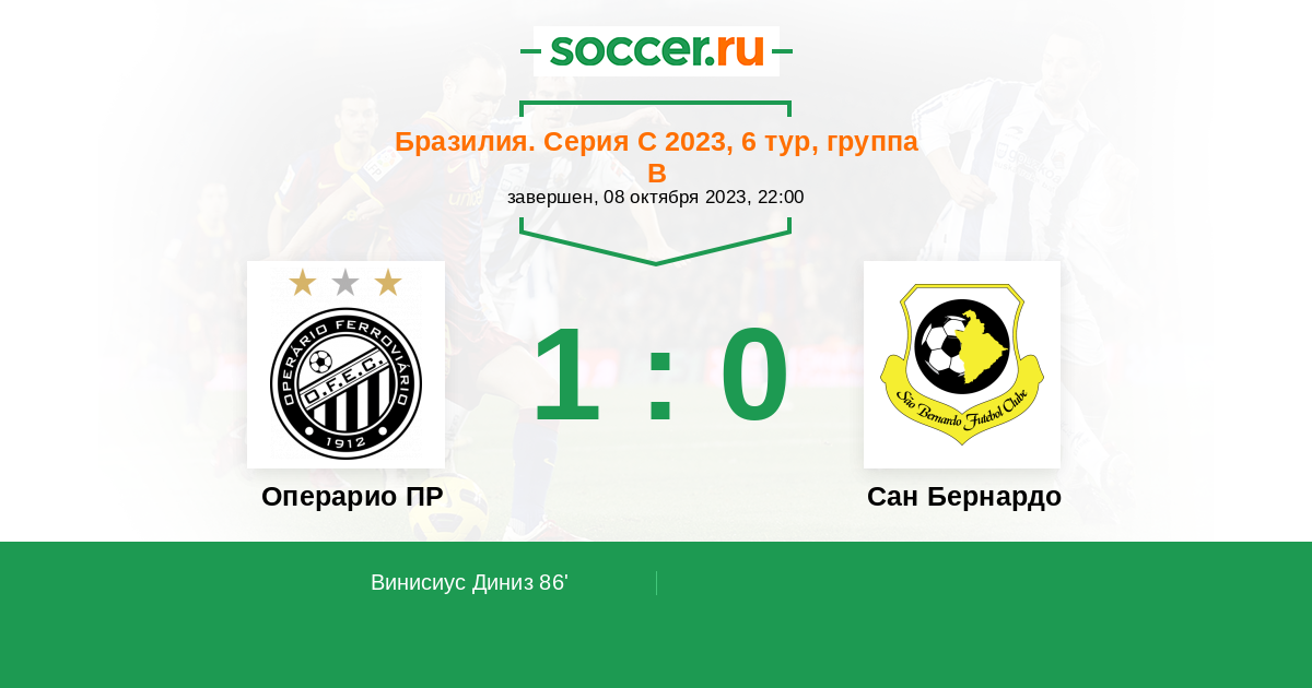 Протокол матча Операрио ПР против Сан Бернардо