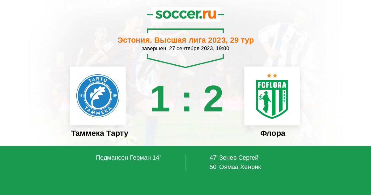 Протокол матча Таммека Тарту против Флора