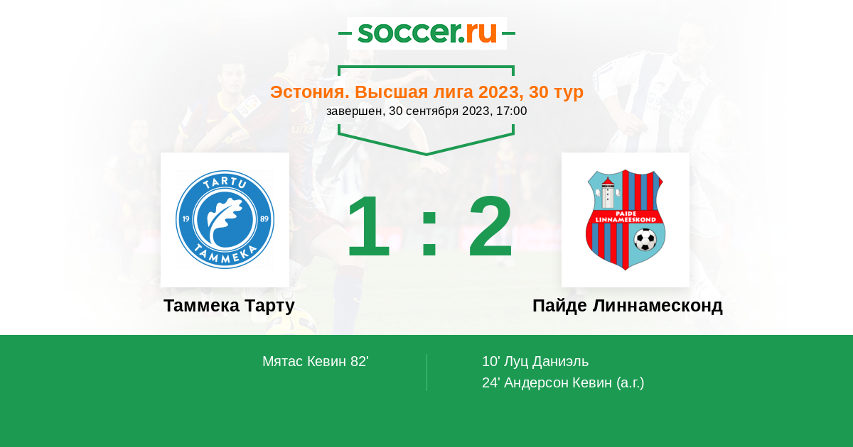 Протокол матча Таммека Тарту против Пайде Линнамесконд