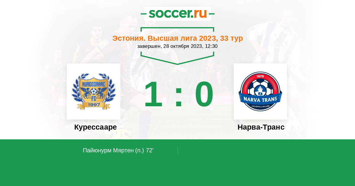 Протокол матча Курессааре против Нарва-Транс