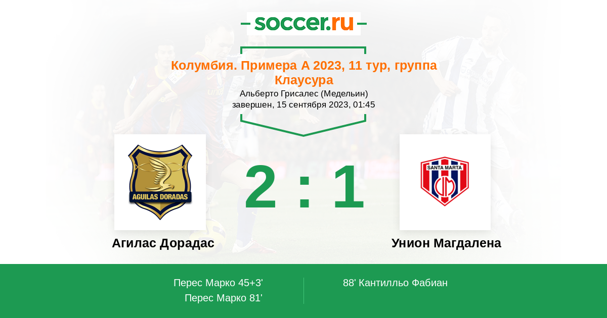 Протокол матча Агилас Дорадас против Унион Магдалена