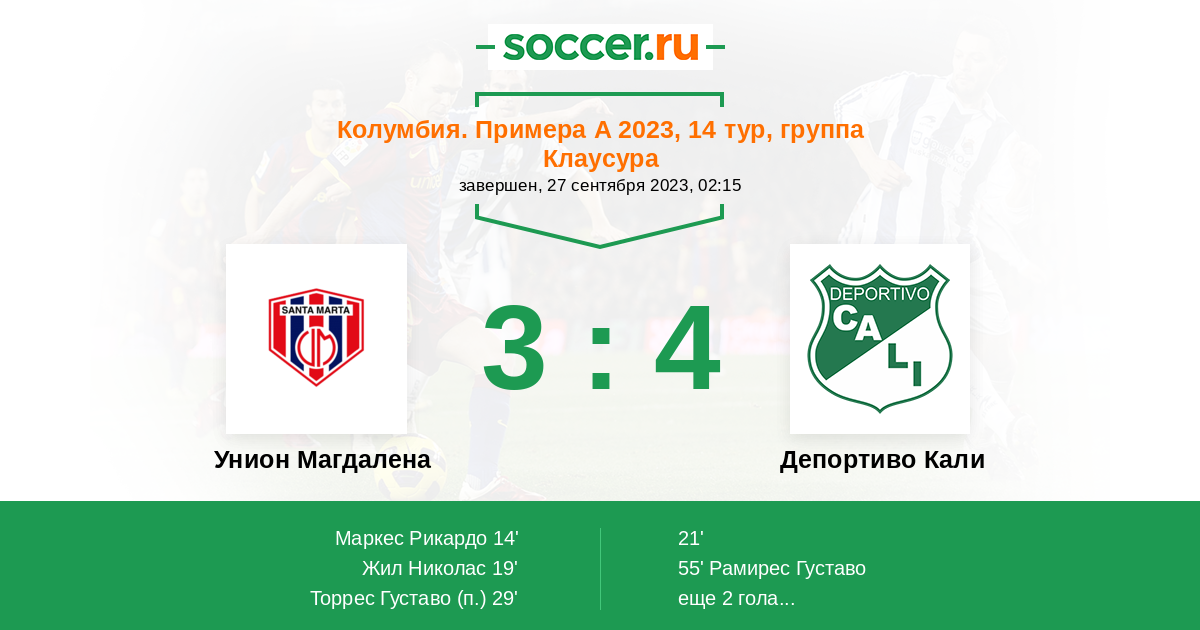 Протокол матча Унион Магдалена против Депортиво Кали