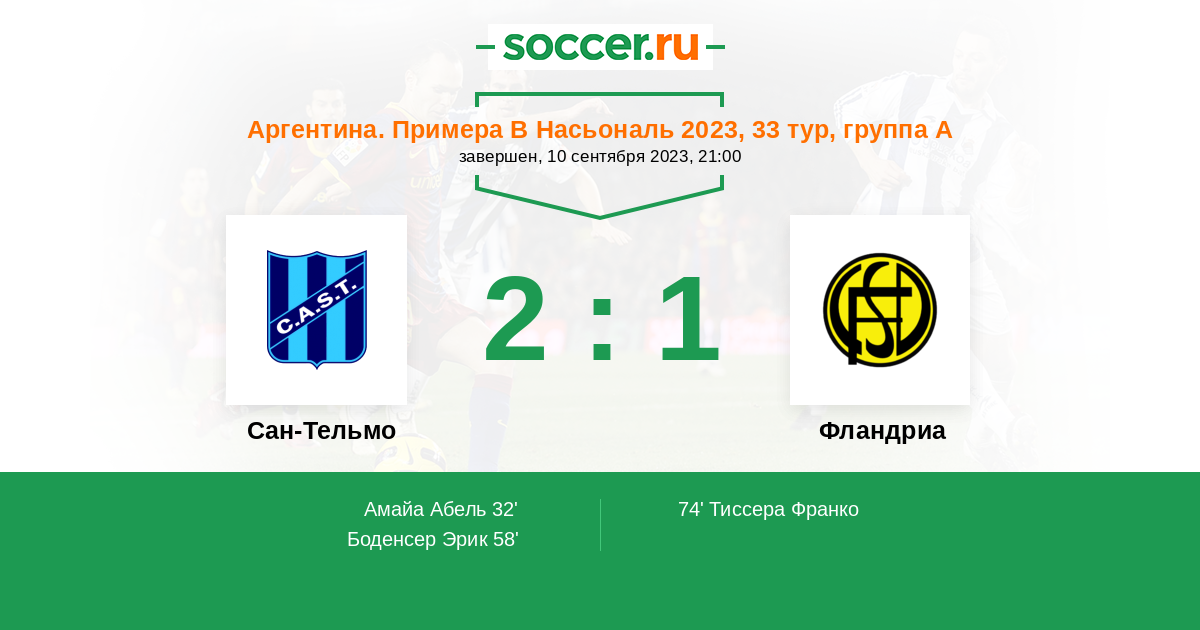 Протокол матча Сан-Тельмо против Фландриа