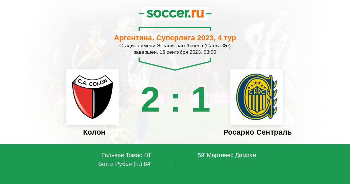 Протокол матча Колон против Росарио Сентраль