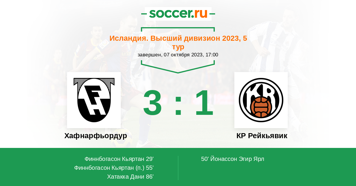 Протокол матча Хафнарфьордур против КР Рейкьявик