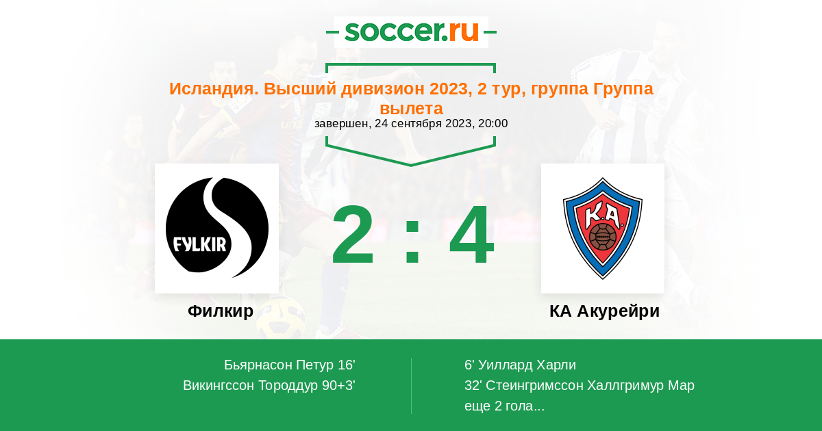 Протокол матча Филкир против КА Акурейри