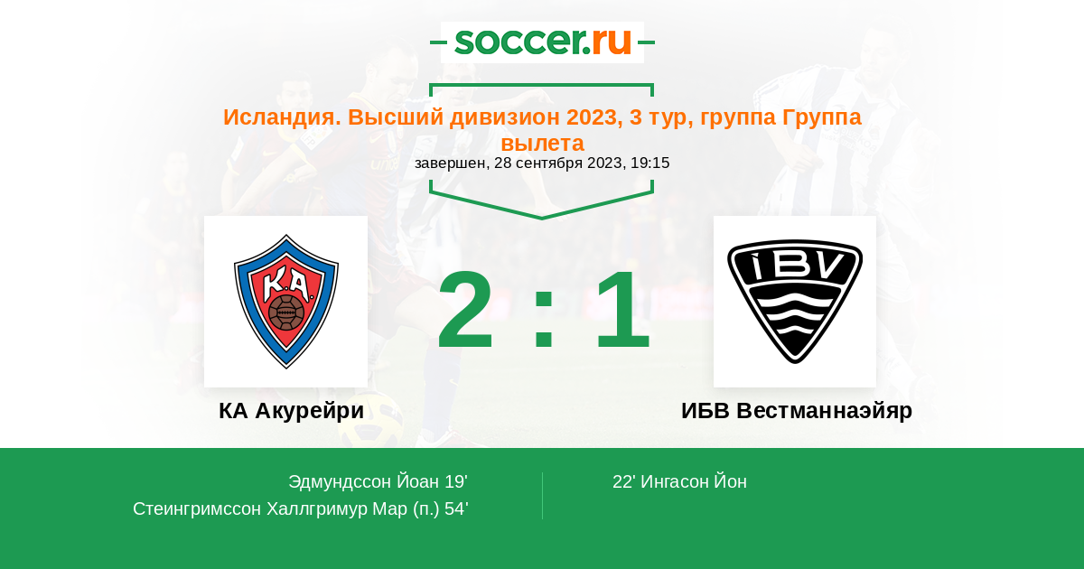 Протокол матча КА Акурейри против ИБВ Вестманнаэйяр