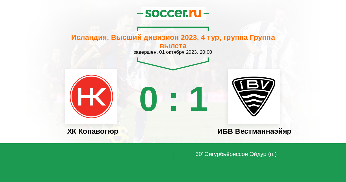 Протокол матча ХК Копавогюр против ИБВ Вестманнаэйяр