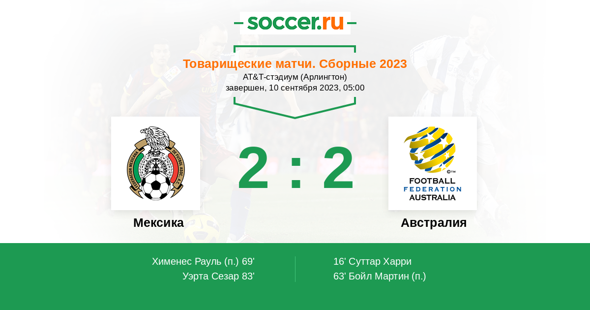 83' (2:2) Уэрта Сезар (21) (Васкес Йохан (5))