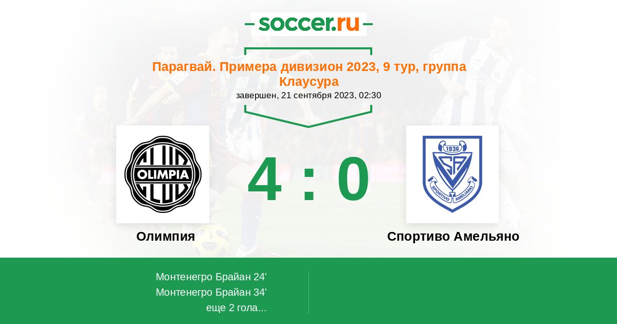 34' (2:0) Монтенегро Брайан (24) (Гамарра Матео (15))
