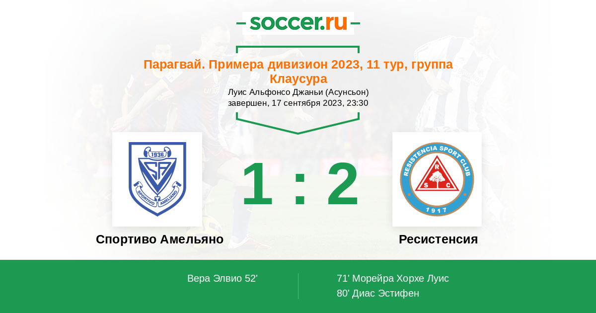Протокол матча Спортиво Амельяно против Ресистенсия