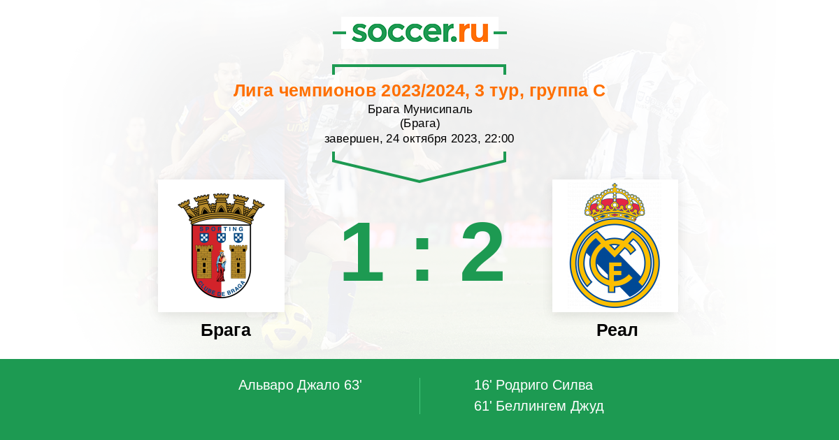 Вполне вероятно, что "Брага" создаст "Реалу" серьёзные проблемы — она на ходу и сыграет дома. Однако, индивидуальный класс и отличная форма Беллингема и Хоселу должны зарешать и принести "Мадриду" три очка.