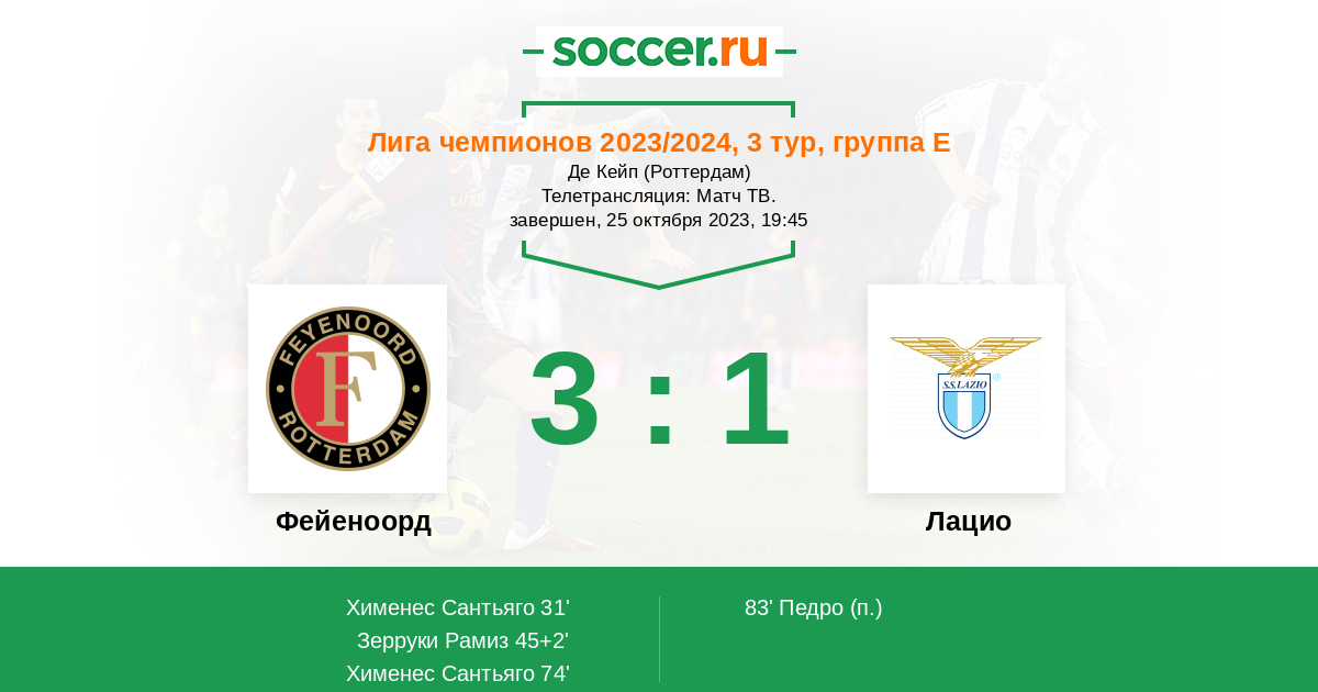 У Фейенорда игра дома - что позволяет считать его фаворитом противостояния. Лацио чуть выше в таблице и игра с прямым конкурентом - просто заставляет их попытаться взять очки в этом матче. Голевой феерии мы скорее всего не увидим, но матч обещает быть интересным.