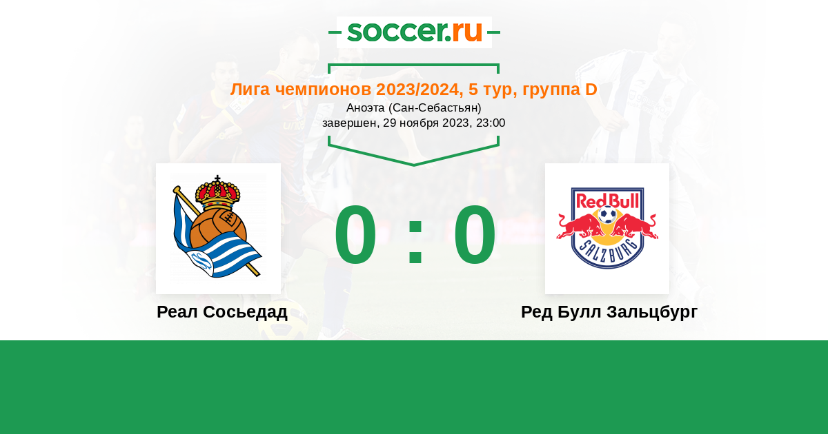 Протокол матча Реал Сосьедад против Ред Булл Зальцбург
