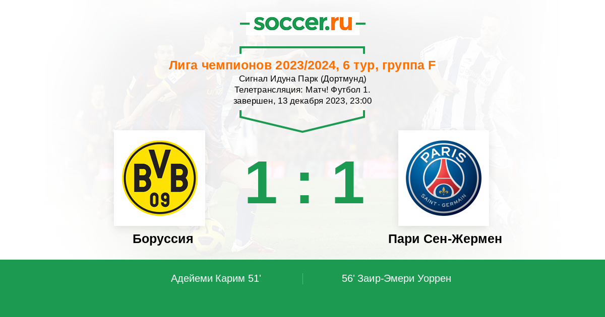 Покак Боруссия тварит сенсацию похоже ПСЖ ждлет ЛЕ.......