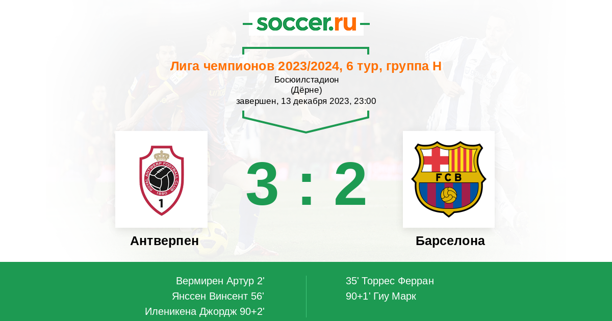 Протокол матча Антверпен против Барселона