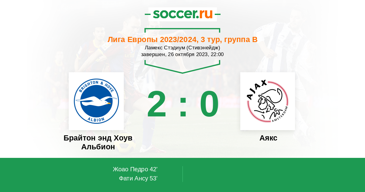 Протокол матча Брайтон энд Хоув Альбион против Аякс