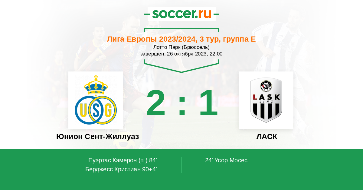 Протокол матча Юнион Сент-Жиллуаз против ЛАСК